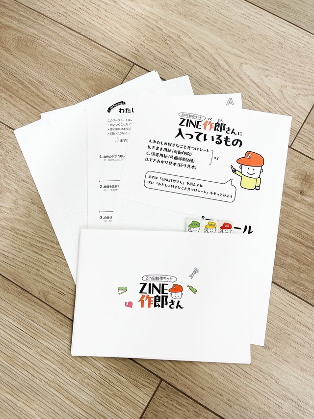 ZINEをつくってみたいけど…どうやってつくればいいの?! という方に。 このキットがあれば、誰でもカンタンにZINEがつくれる。 印刷はコンビニ、製本はお手持ちの文具でOK! ZINE初心者用、材料丸ごとキットです。 【内容】 ・「ZINE作郎さんZINE」1冊:アイデア出し~印刷まで、キットの使い方と合わせて丁寧に解説したZINE。印刷会社ならではのアドバイスを盛り込んだ一冊。 ・わたしの好きなこと見つけシート3枚 ・下書き用紙3枚 ・清書用紙3枚 ・できあがり見本1冊