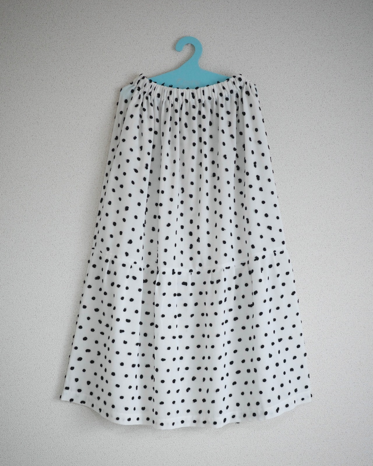 ティアードの切替えがタックになることで可愛くなりすぎず、